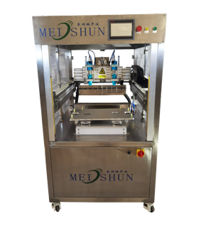 該設備配備雙把超聲波刀片,既可切方蛋糕,也可同時切兩個圓蛋糕,還具有自動上水洗刀、安全光柵的人性化功能,效率高,更方便 |